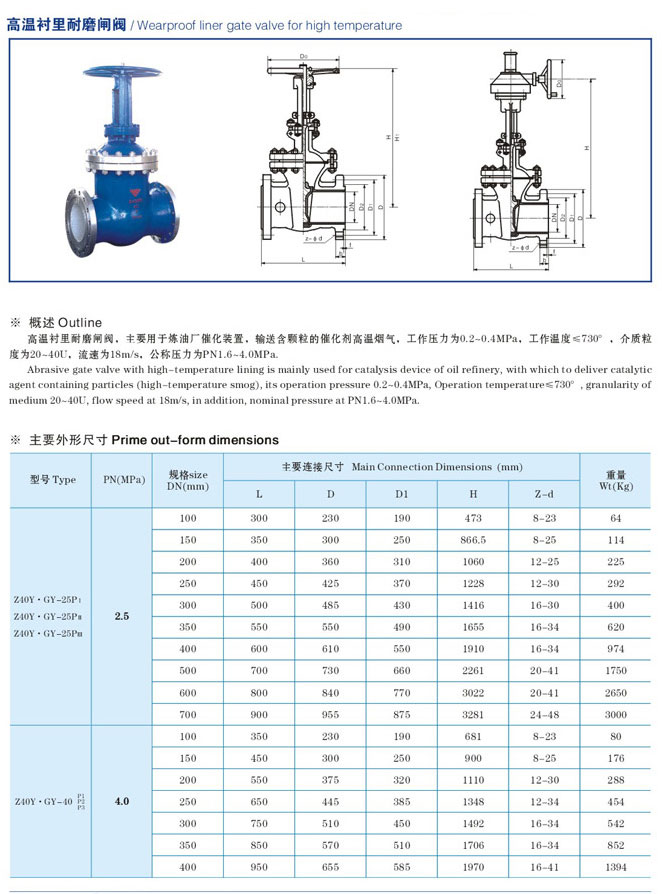 高溫襯里耐磨閘閥